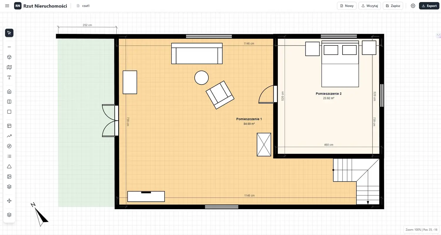 Narysuj rzut w kilka minut. Pobierz. Użyj w ogłoszeniu. Idealne dla agentów, flipperów, projektantów i osób sprzedających mieszkanie lub robiących remont.
