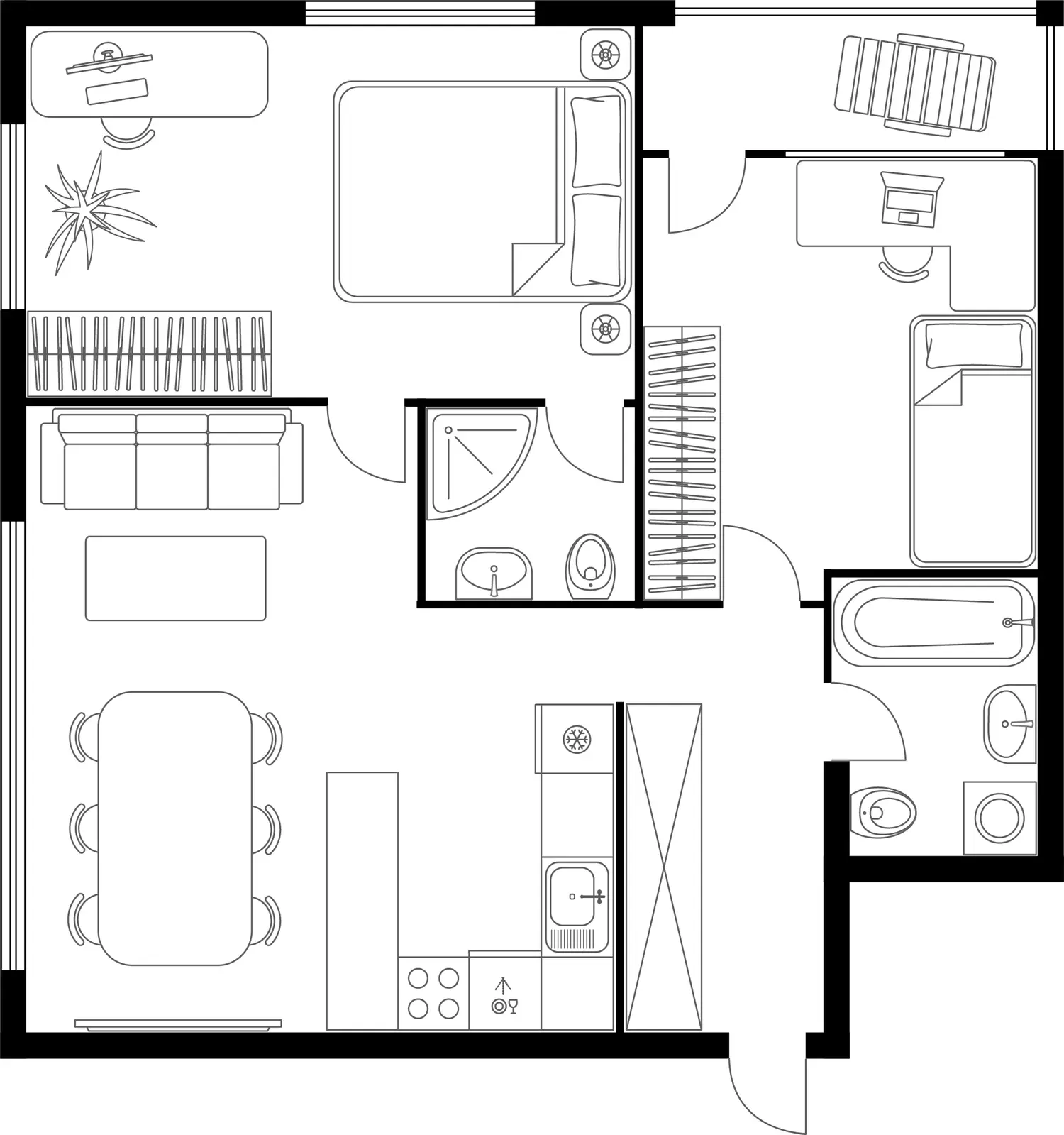 Wykonujemy rzuty 2D, rysunki techniczne wraz z uwzględnionymi wymiarami, meblami w różnych stylach i kolorystyce.